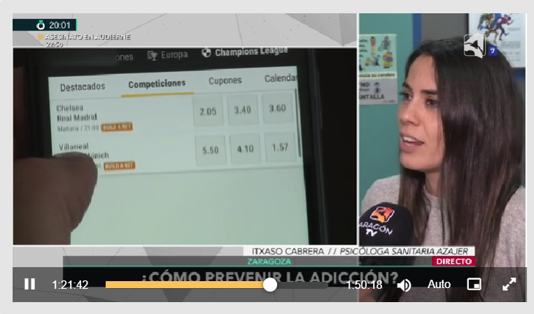 1 de cada 10 alumnos de secundaria reconoce que apuesta online. Entrevista de Azajer en Conexión Aragón